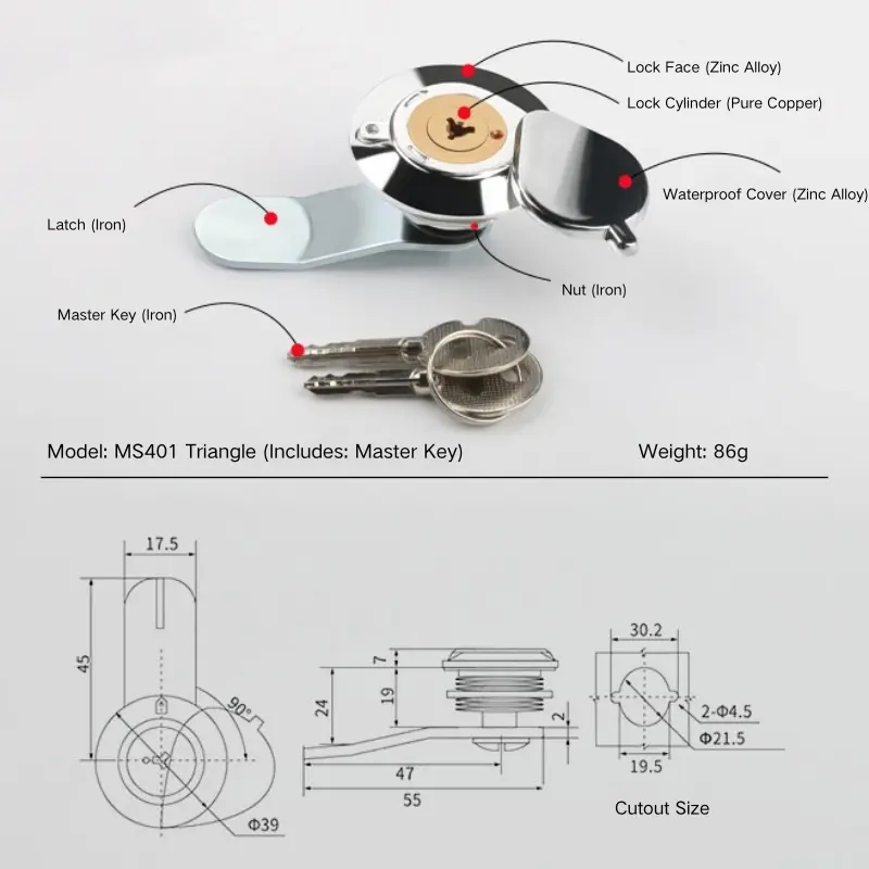 Tegumentum huius impluvii fori cincinnis protegit seram cylindrici, vitam suam extendens. Coniungendo varias materias, mixturae zinci mixturae clara chrome metam inducunt. Apta ad ostium panel crassitudines 1-6mm, sumptis eligat num optet hoc exemplar operculum waterproof secundum eorum necessitates. Ad hanc parvam seram rotundam, etiam versionem cylindrici cylindrici transversim informem sine operculo IMPERVIUS praebemus. Claves magistri selecti vel claves singulares secundum exigentias administrationis.